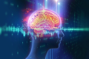 3d rendering of human brain on technology background