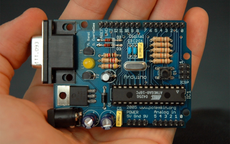 In 2005 the first Arduino was introduced. It began as a school project at the Interaction Design Institute Ivrea in Ivrea, Italy. Ironically the name Arduino derived from a local bar in Ivrea where the founders would meet to work on the project. The masterminds behind Arduino, the microcontroller not the bar, where Massimo Banzi, David Cuartielles, Tom Igoe, Gianluca Martino and David Mellis.