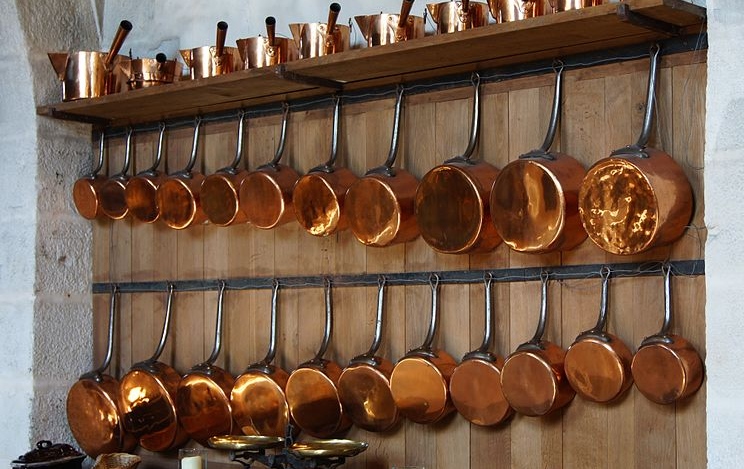 The first metal to be utilised was copper and during the Bronze Age cooper alloys like bronze (copper and tin) were used but the costs were prohibitive and so ceramics dominated in cooking. Metal pots from Roman times have been recovered but it wasn’t until much later that metal pots and pans became a common feature of the kitchen in western civilisations.