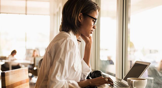 female coffee working computer